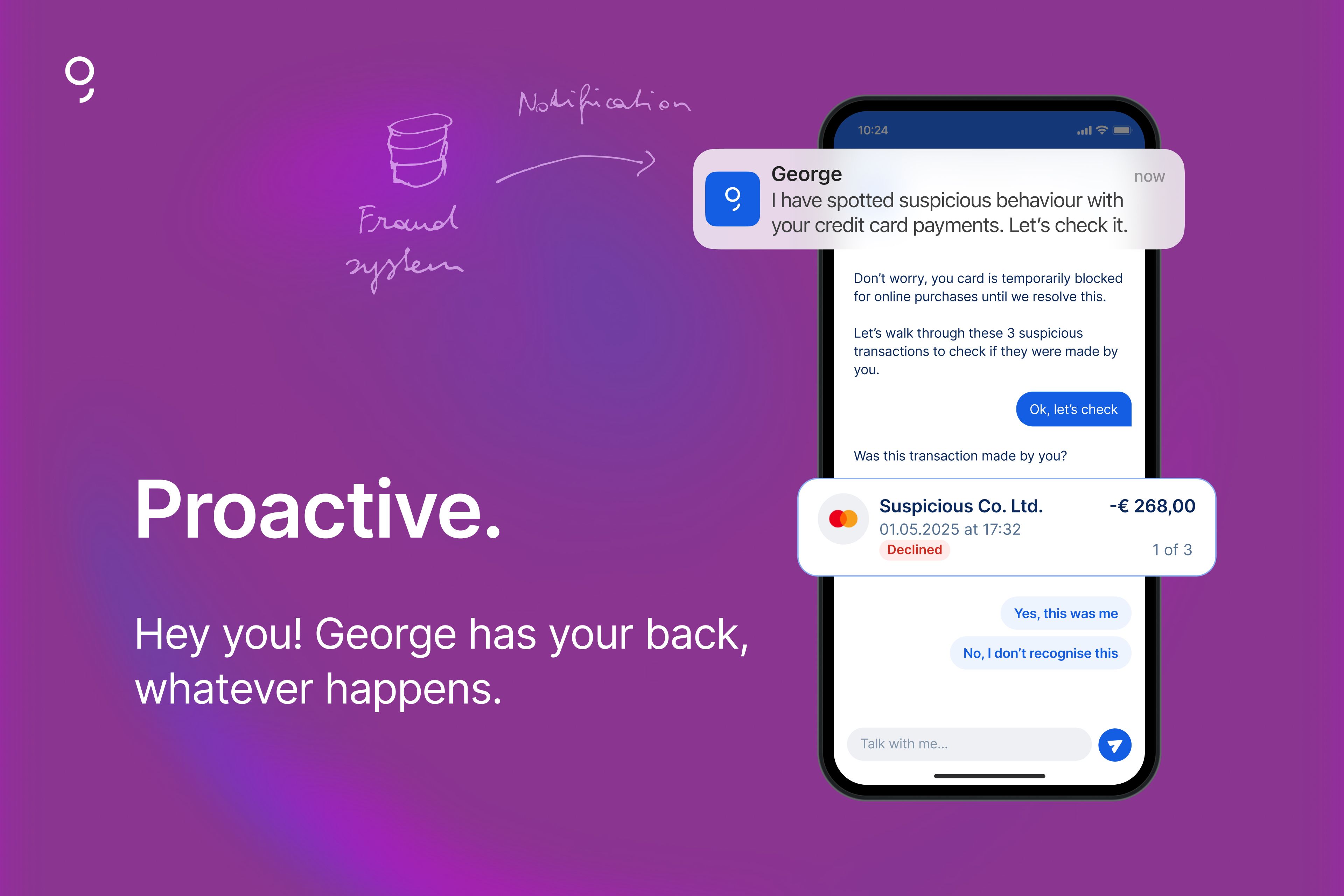 Users are charred by bad chatbot service implementations, which are all around us. So our main challenge in terms of UX was to regain their trust. This can only be achieved by replacing those bad memories with memorable moments, which make our users think “Wow, that was helpful” and return to use “Hey George” again. Also, where do you even start designing for this plain playing field, where a conversation between a user and AI can go in any direction? We had to put a lot of effort into exploratory research to find the topics and questions which users would ask, and what data sources we need, in order to answer those questions to a level that exceeds their expectations.