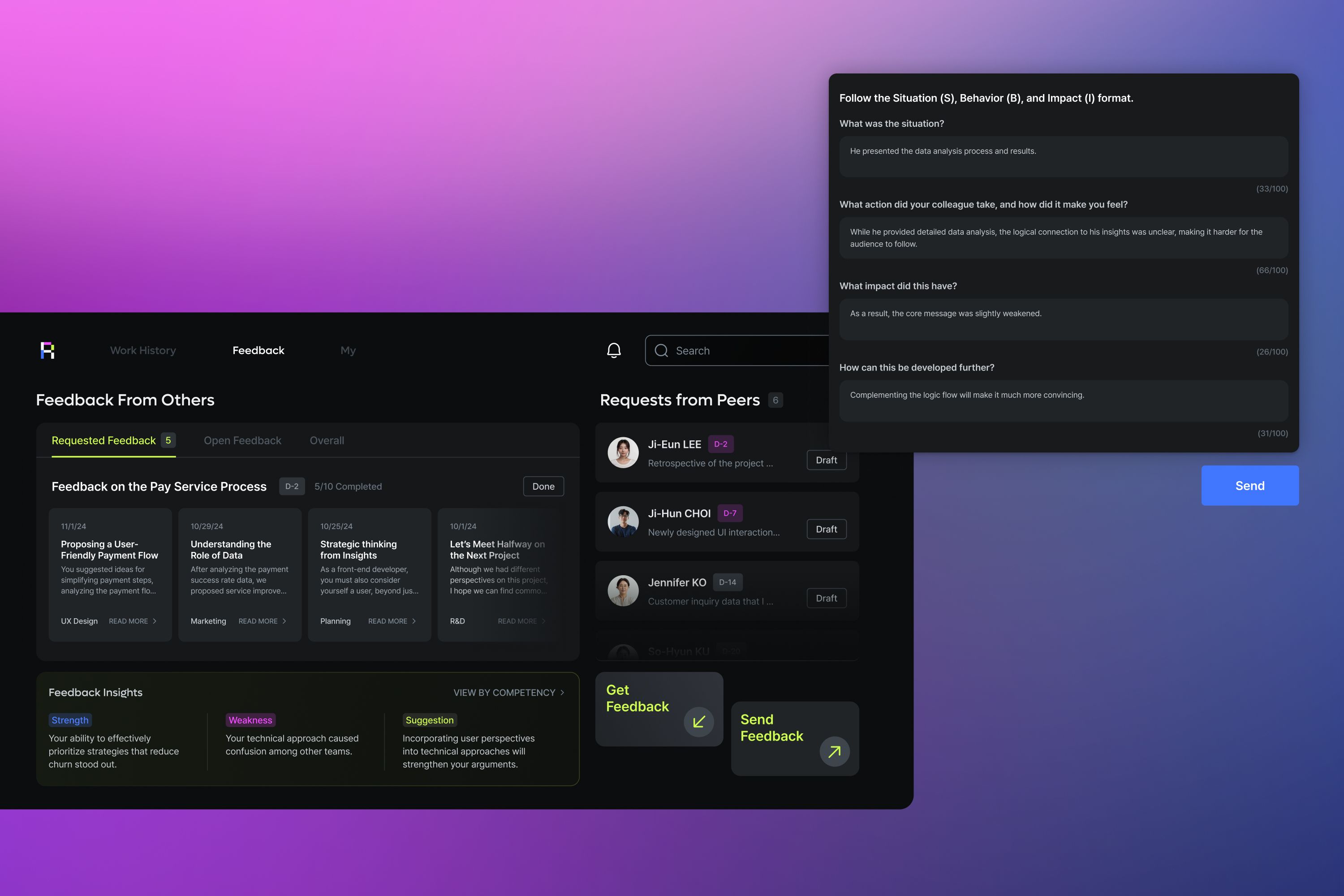 The “Aha!” moment was realizing that the service was not just about building employee confidence, but also function as an efficient performance evaluation tool both within and beyond the company. Initially, the team positioned the platform as a B2B solution designed to support employee growth. However, through interviews with industry experts, the team received feedback that this solution could significantly streamline handover processes and enhance performance evaluations, making it beneficial not only for individuals but also at the organizational level. This insight was a breakthrough, prompting the team to explore secure data transfer solutions for inter-company information sharing and refine their B2B marketing strategies.