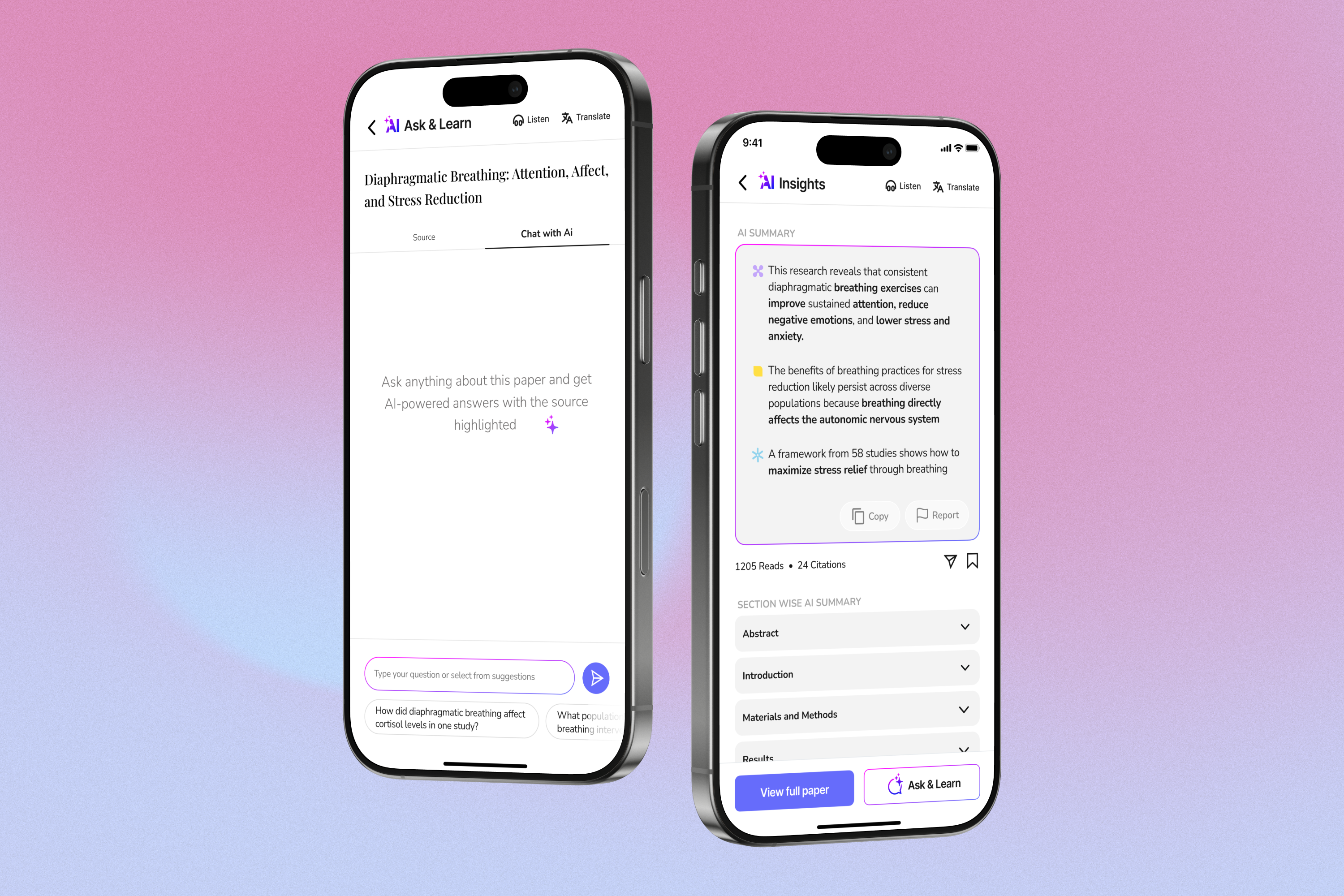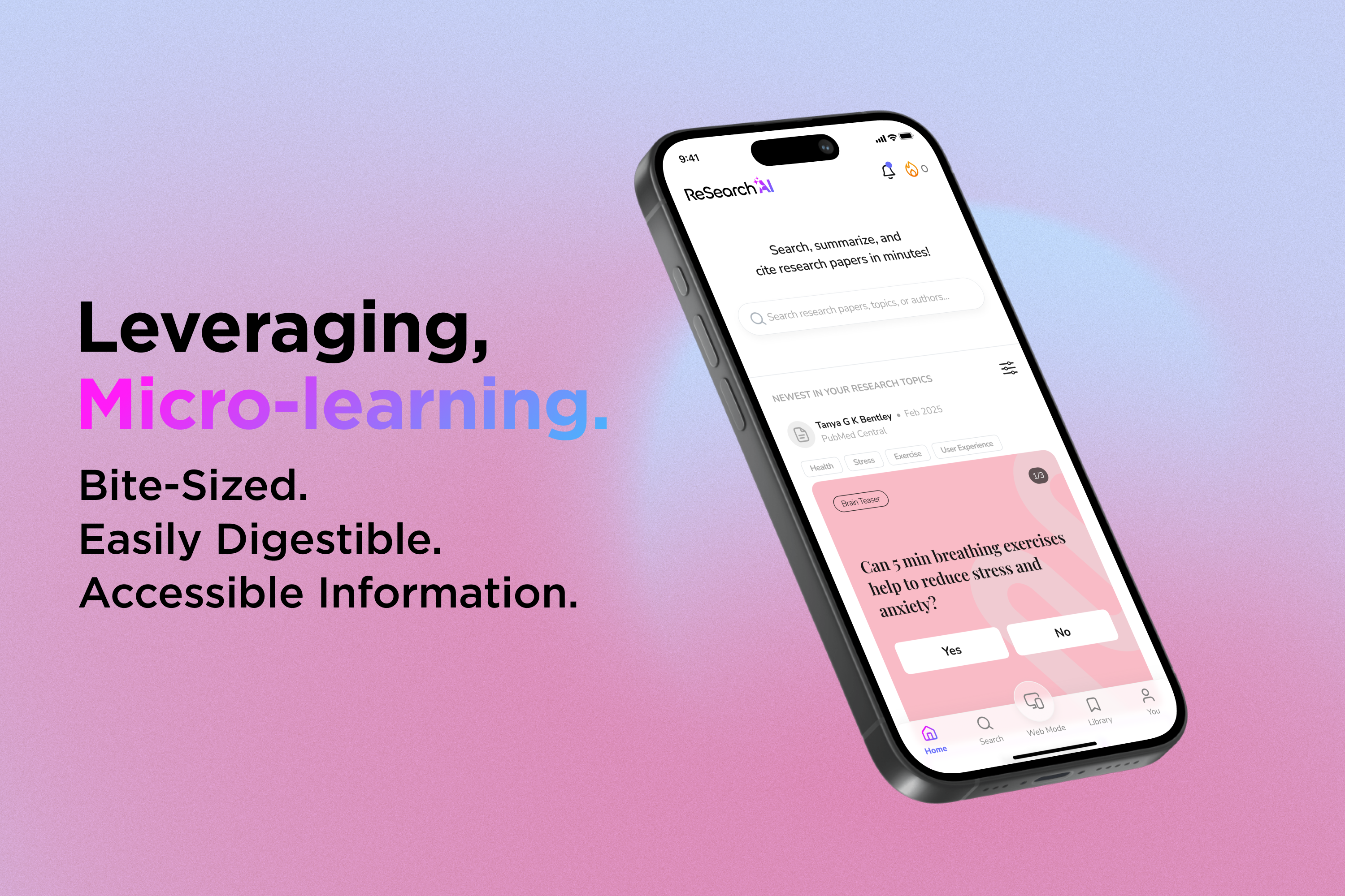 One of our main UX challenges was striking the right balance between accessibility and academic accuracy. We aimed to make complex research findings easier to grasp, without oversimplifying the scientific content. At the same time, it was essential to build trust by ensuring that users could easily verify the information they read. To support this, we designed the interface to offer quick access to full papers. Throughout, we focused on creating a seamless microlearning experience that maintained the depth and integrity of academic knowledge.