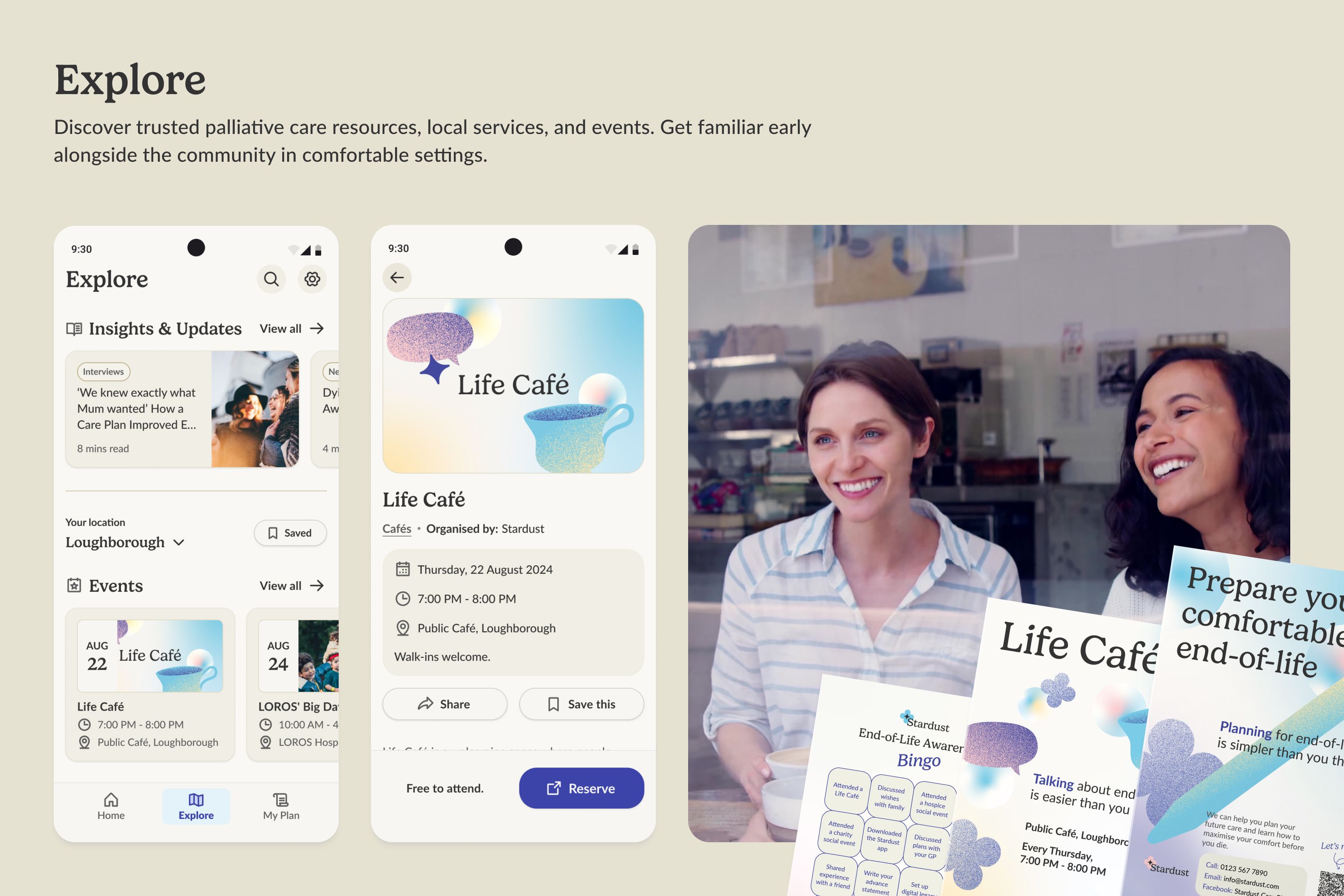 The key challenge was designing an inclusive service for older adults with diverse health conditions and their caregivers. While aware of digital skills barriers, I recognised the need for digital touchpoints for long-term effectiveness. Therefore, I ensured inclusive, accessible options through mixed digital and physical touchpoints. For example, events at accessible local venues, multiple contact methods beyond QR codes, and special booking requests. The app has a WCAG-compliant design with high contrast and large buttons. User flows, information architecture, and UX writing were refined through iterative testing with diverse users to be straightforward and set clear expectations, continuously improving inclusivity.