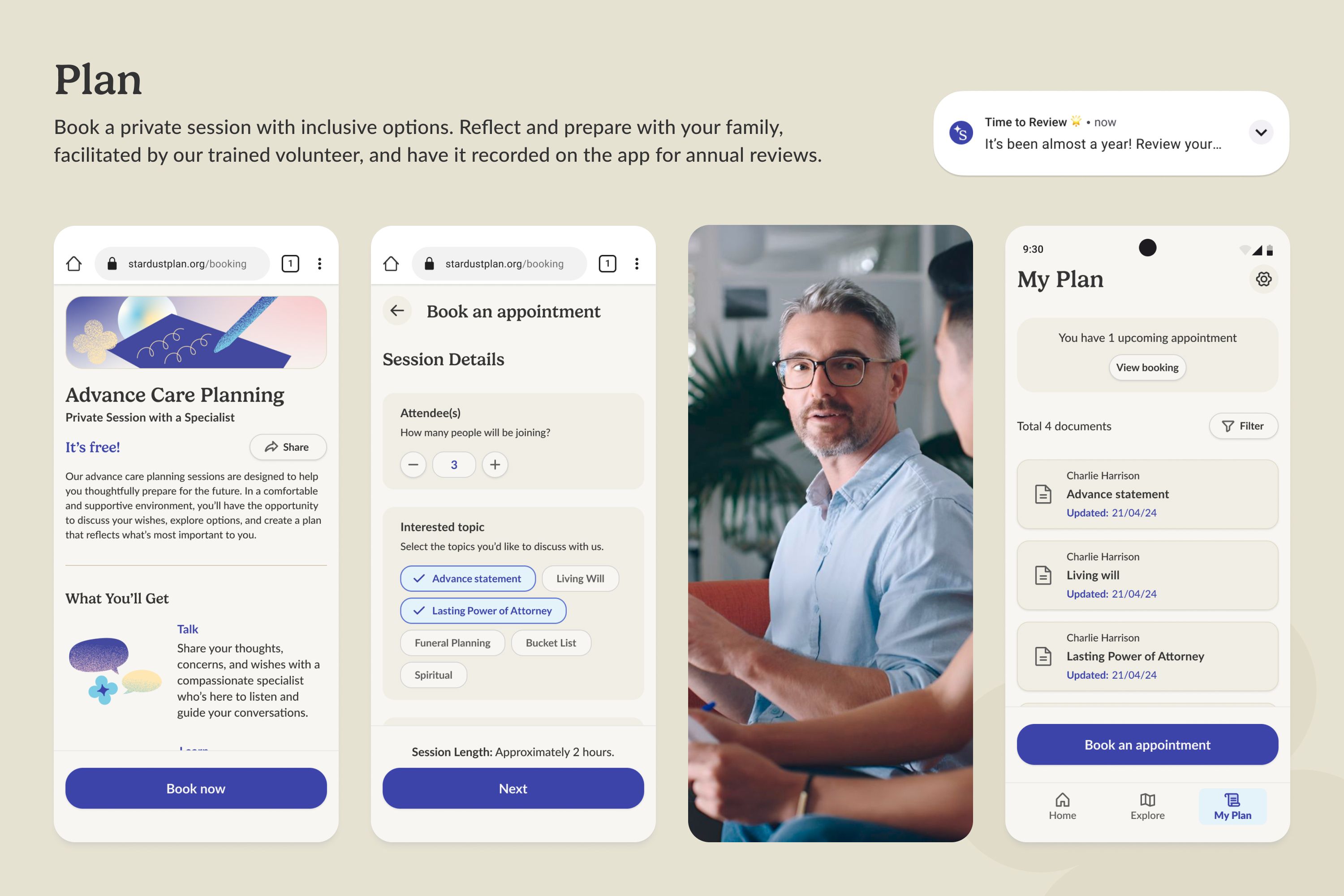 This project challenged me with a wicked, systemic healthcare problem. The deeper I researched, the more issues I discovered across the system, making it difficult to identify design opportunities. After extensive analysis and supervisor discussions, I realised the focus should be on awareness and preparedness - advance care planning as key to a good death, starting with individuals and communities for a larger impact. My initial AI-powered concepts seemed innovative until user testing revealed the aha! moment: AI intimidates users on this sensitive topic. Users preferred human connection, leading to facilitated advance care planning sessions with trained volunteers becoming the unique core feature.