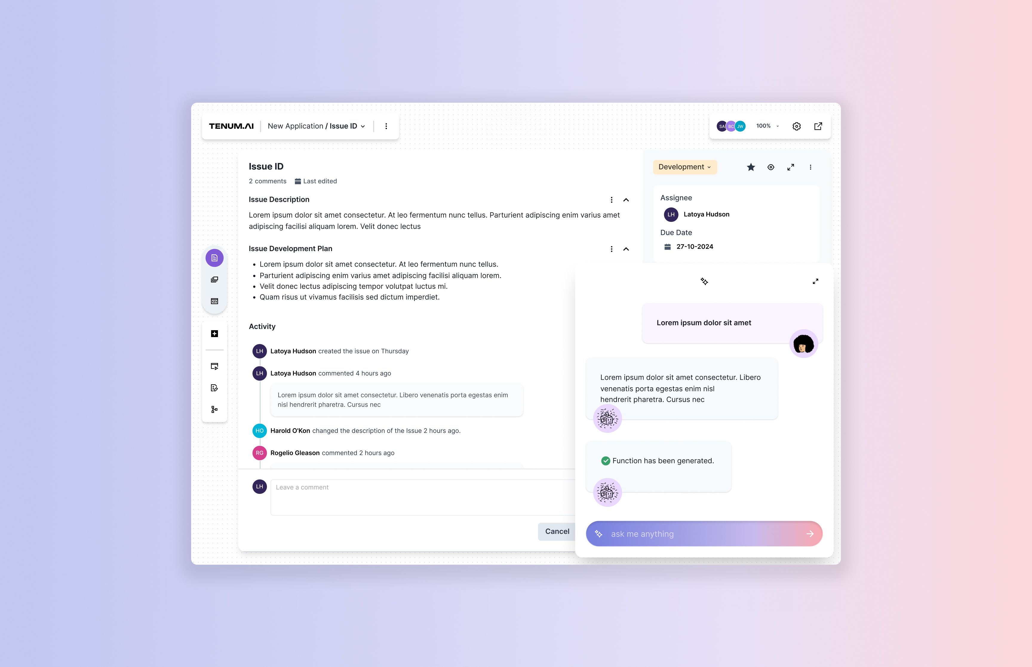 Since the platform's target audience includes business owners, one of the main challenges was to avoid creating 'silos' in the project. From a UX perspective, we decided to take something familiar to the audience from their world: With Tenum, users don’t manage or develop their project in a complex development environment, but through a Kanban board. The Kanban board serves as the unified and clearly structured foundation at every step of the development process. No matter how deeply I dive into the technical side of development, the Kanban board allows business owners, developers, and the AI to speak the same language.