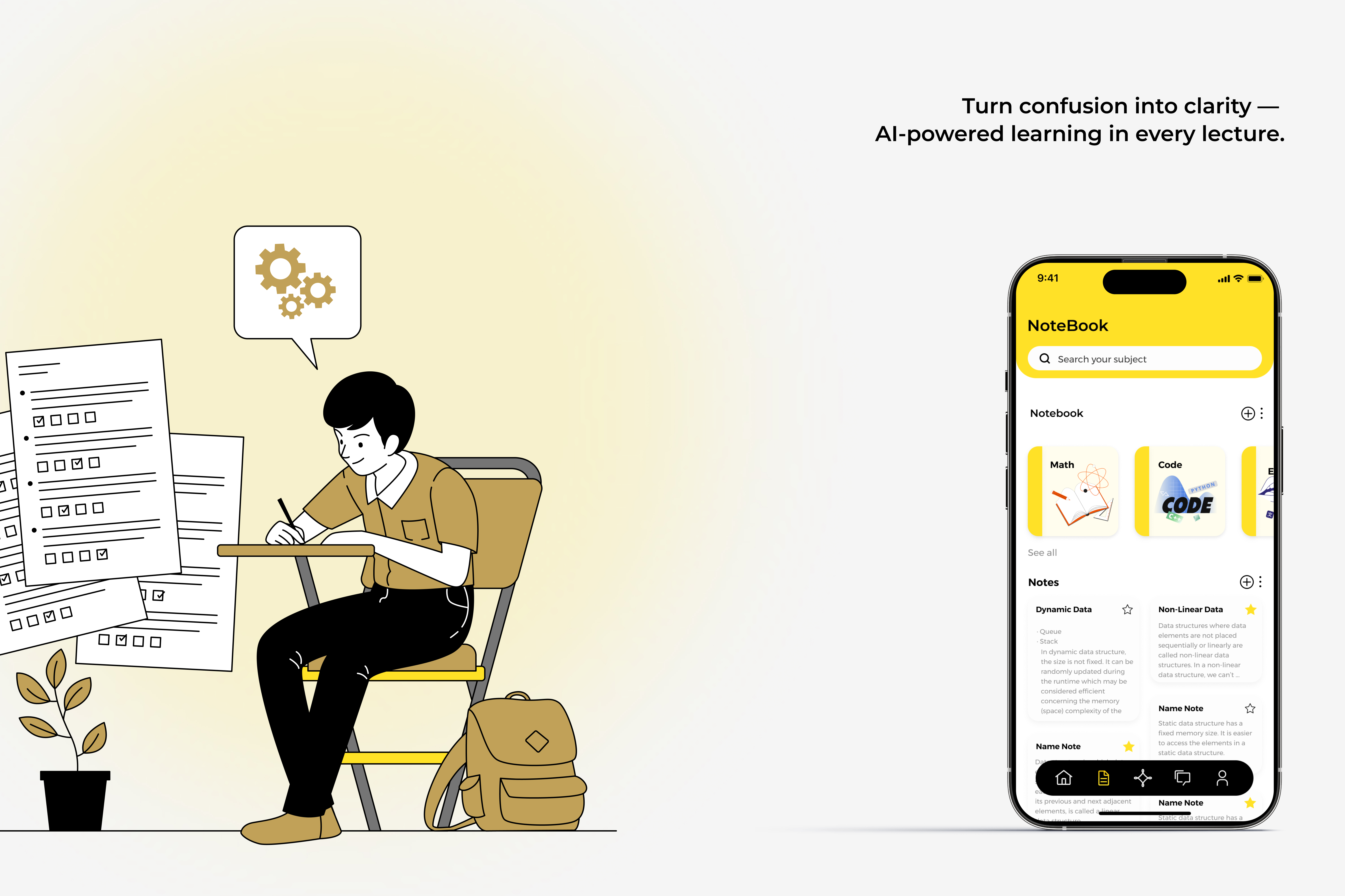 The main UX challenge was designing an interface that could seamlessly integrate multiple data streams (smart glasses, mobile devices, real-time content capture) without overwhelming users. We had to balance comprehensive functionality with cognitive ease—ensuring students could access AI-powered features while staying focused on learning. The biggest hurdle was creating intuitive interactions across different devices and contexts, from passive content capture through smart glasses to active engagement via mobile apps. We also faced the challenge of making complex AI capabilities feel transparent and trustworthy rather than intrusive or confusing.