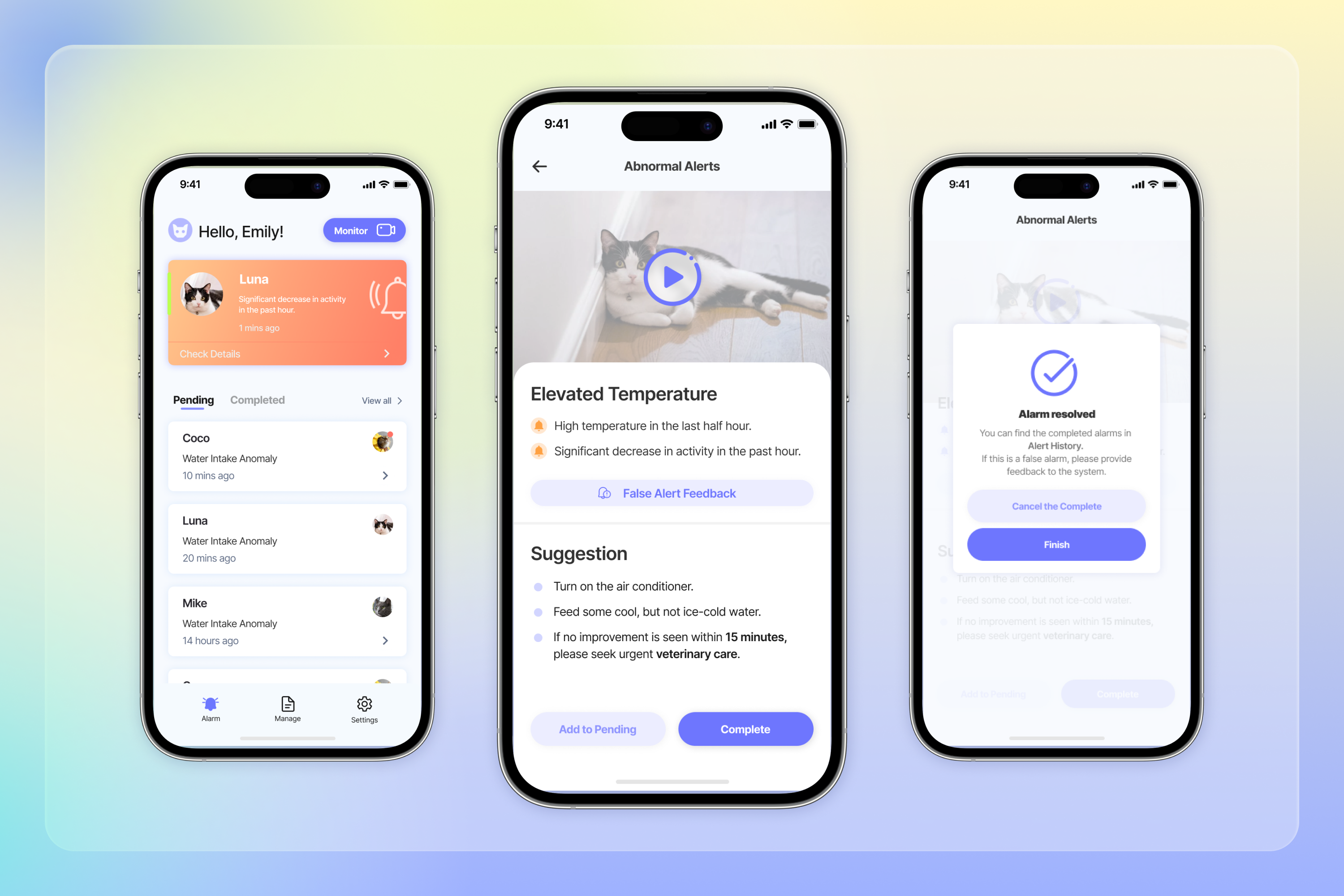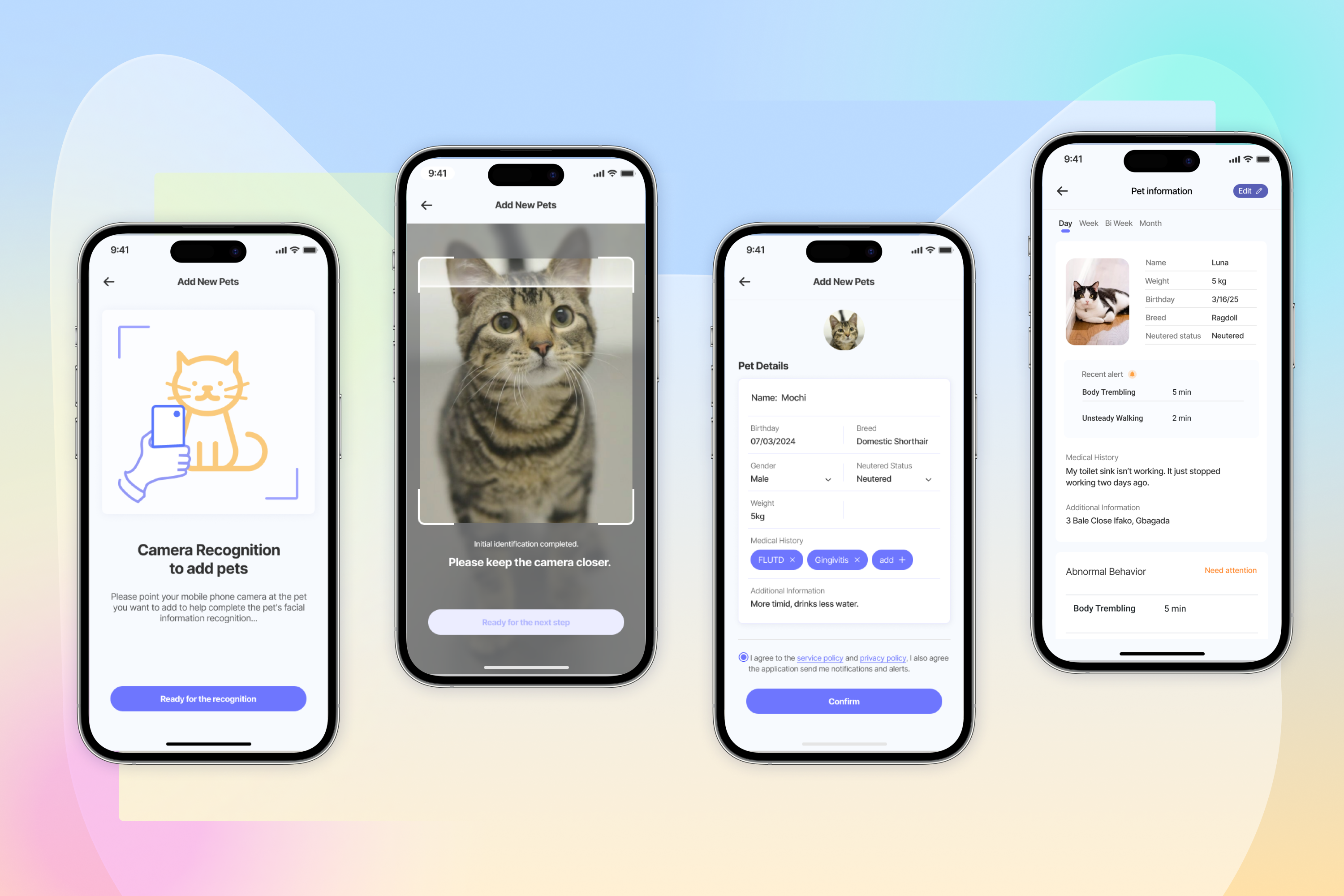 One of the main UX challenges we faced was designing a system that balanced technical complexity with everyday usability. Our users include both pet owners and shelter staff—groups that often lack medical training—so we needed to present medically relevant insights in a way that was clear, non-intimidating, and easy to act on. This meant simplifying workflows, designing intuitive alert displays, and ensuring that users could quickly understand what behaviors were flagged and why. Building user trust through transparency and responsible feedback was a central design priority.