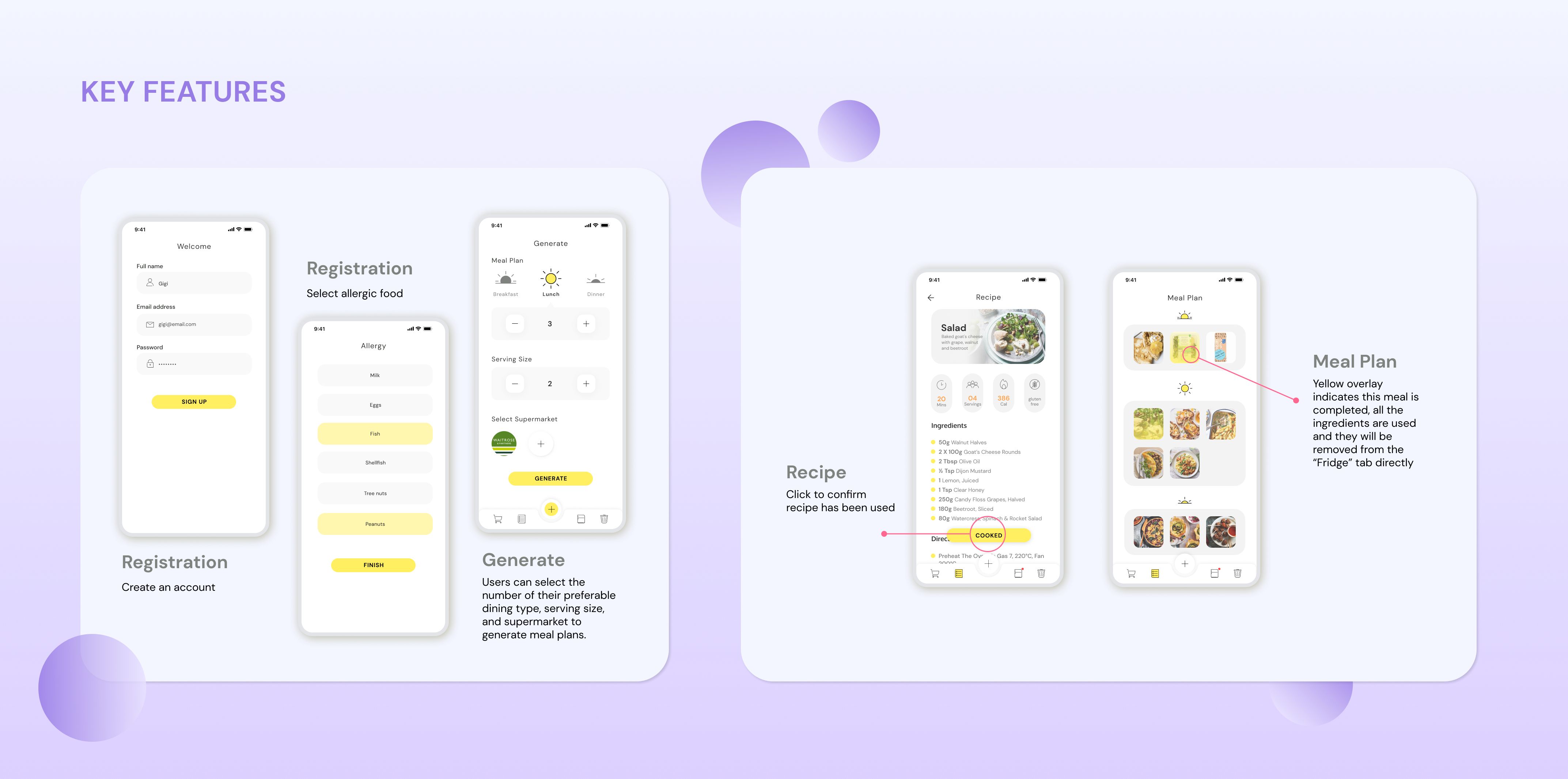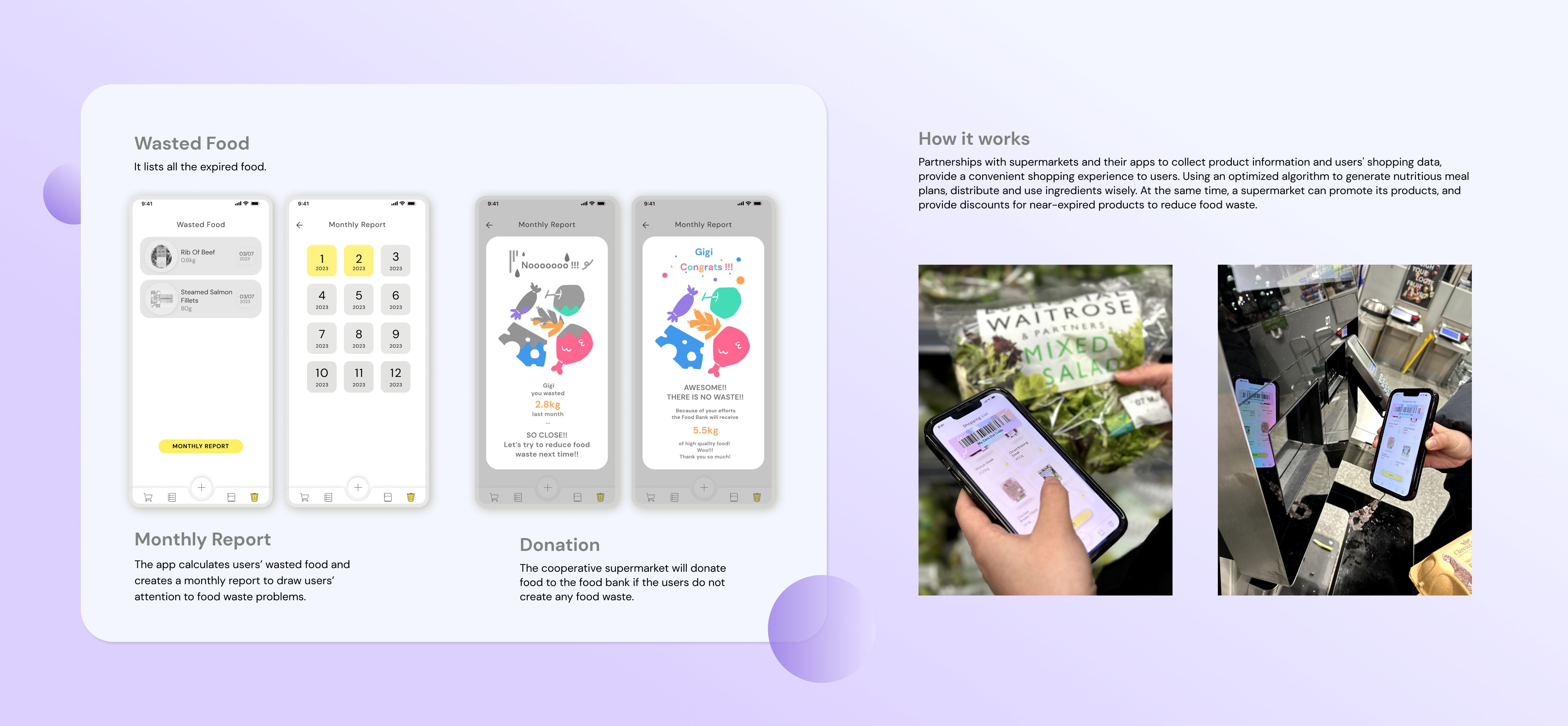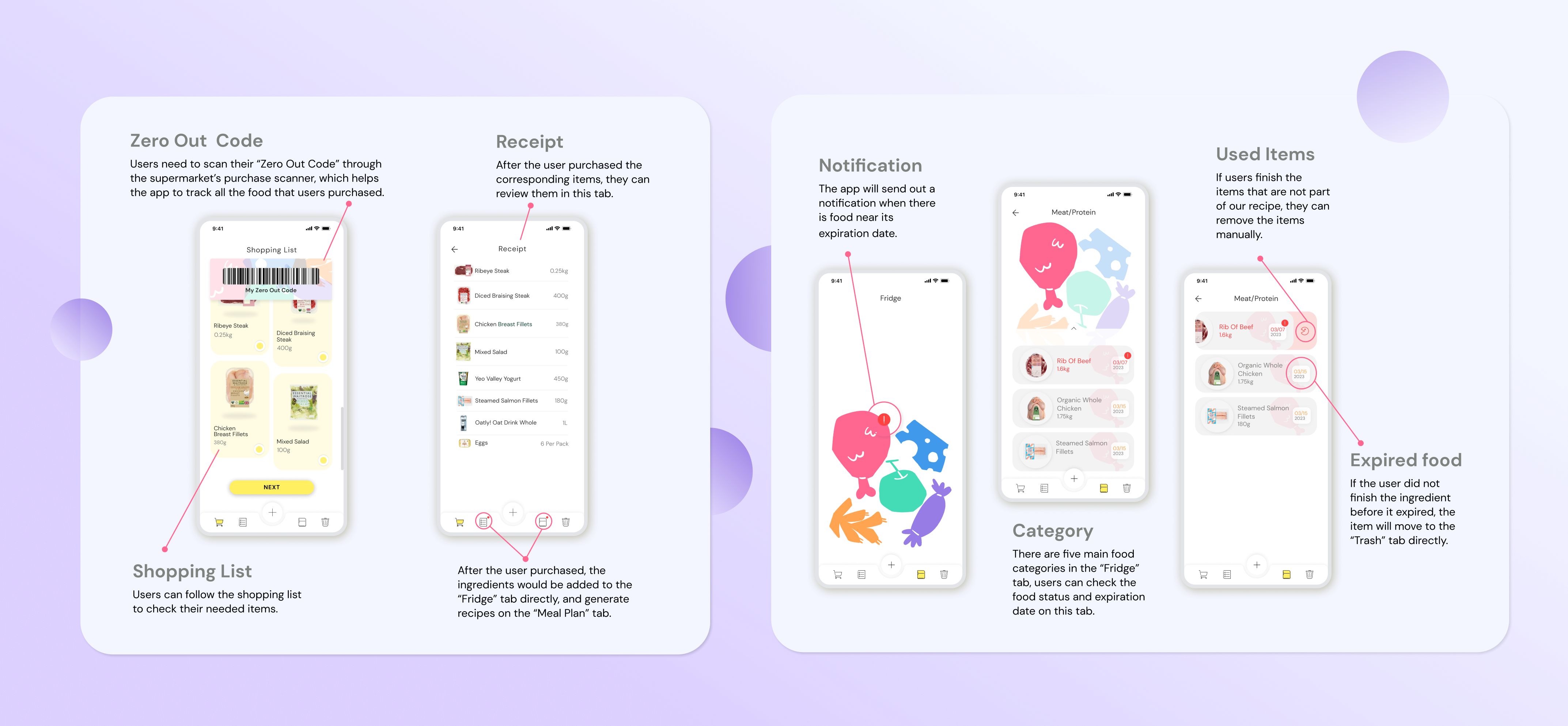 The main UX challenge was creating a practical, intuitive experience that helps users reduce food waste while encouraging sustainable habits. Users often forgot expiration dates, lacked food storage knowledge, struggled to finish fresh groceries, and found meal planning difficult. To address these issues, we explored features like grocery store mapping for efficient shopping, packaging cues for expiration and usage tips, and smart ingredient tracking. Through interviews, surveys, and user testing, we refined the app to support mindful consumption in an engaging, user-friendly way that fosters lasting behavioral change.