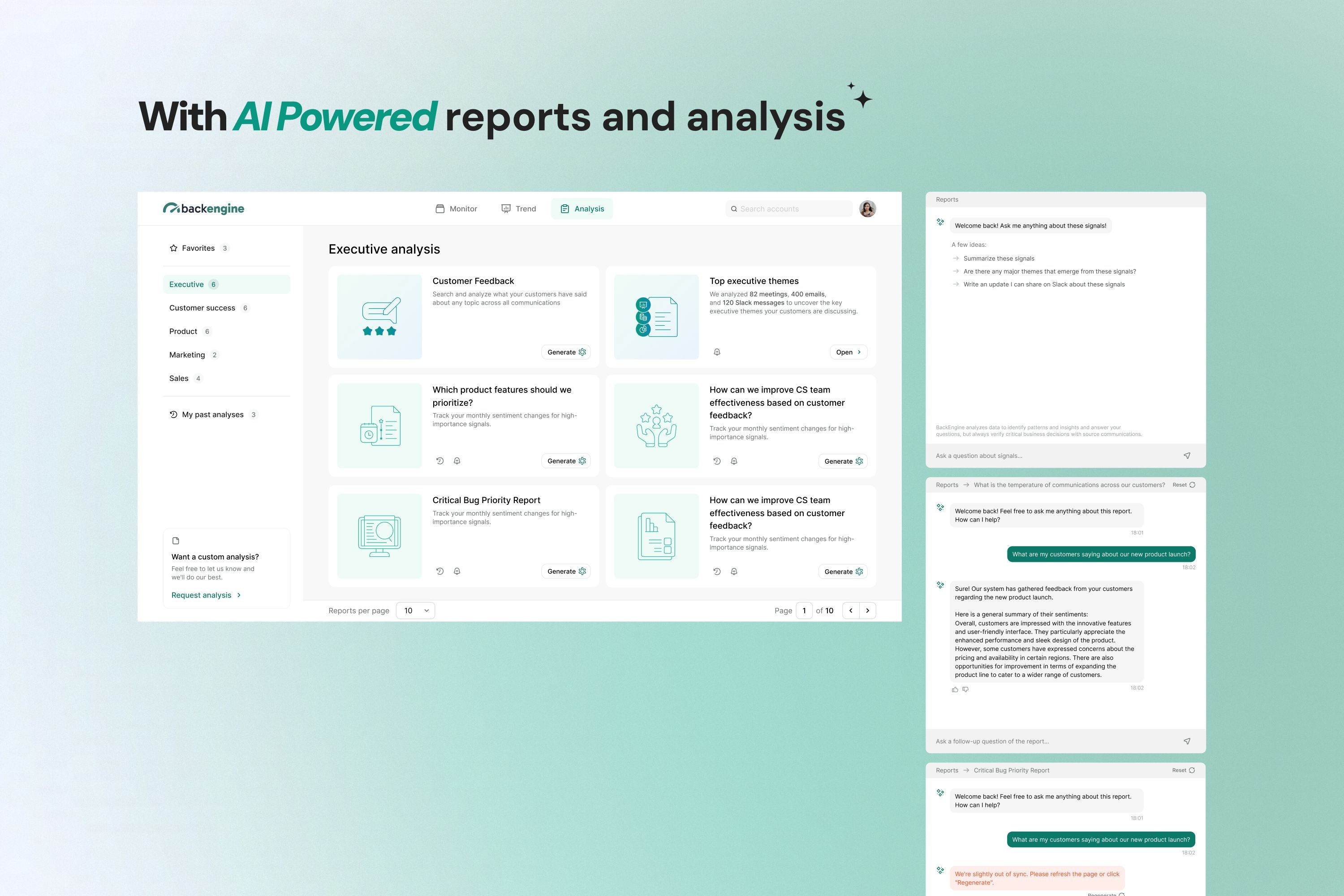 The core UX challenge was transforming massive volumes of unstructured customer communication into signals that were genuinely useful rather than abstract or misleading. Insights had to be meaningful, trustworthy, and grounded in concrete evidence, while avoiding cognitive overload.