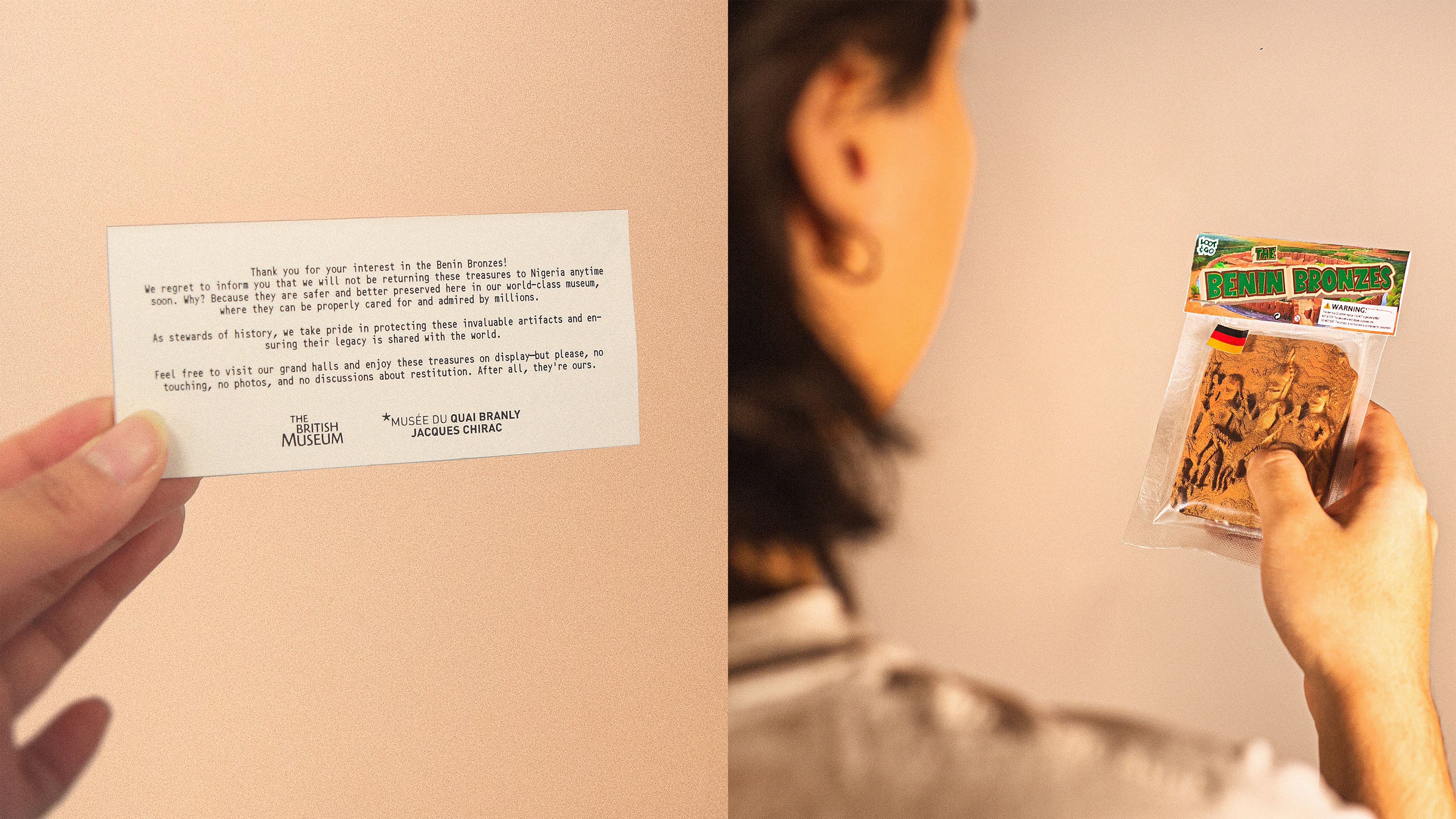 The main UX challenge was designing a journey that communicates a complex political issue in a single, understandable interaction. The topic of restitution is often hidden behind legal and institutional language, so the experience had to provide just enough context without overwhelming users. Translating abstract policy differences into an intuitive, physical interaction was central to the UX design challenge.