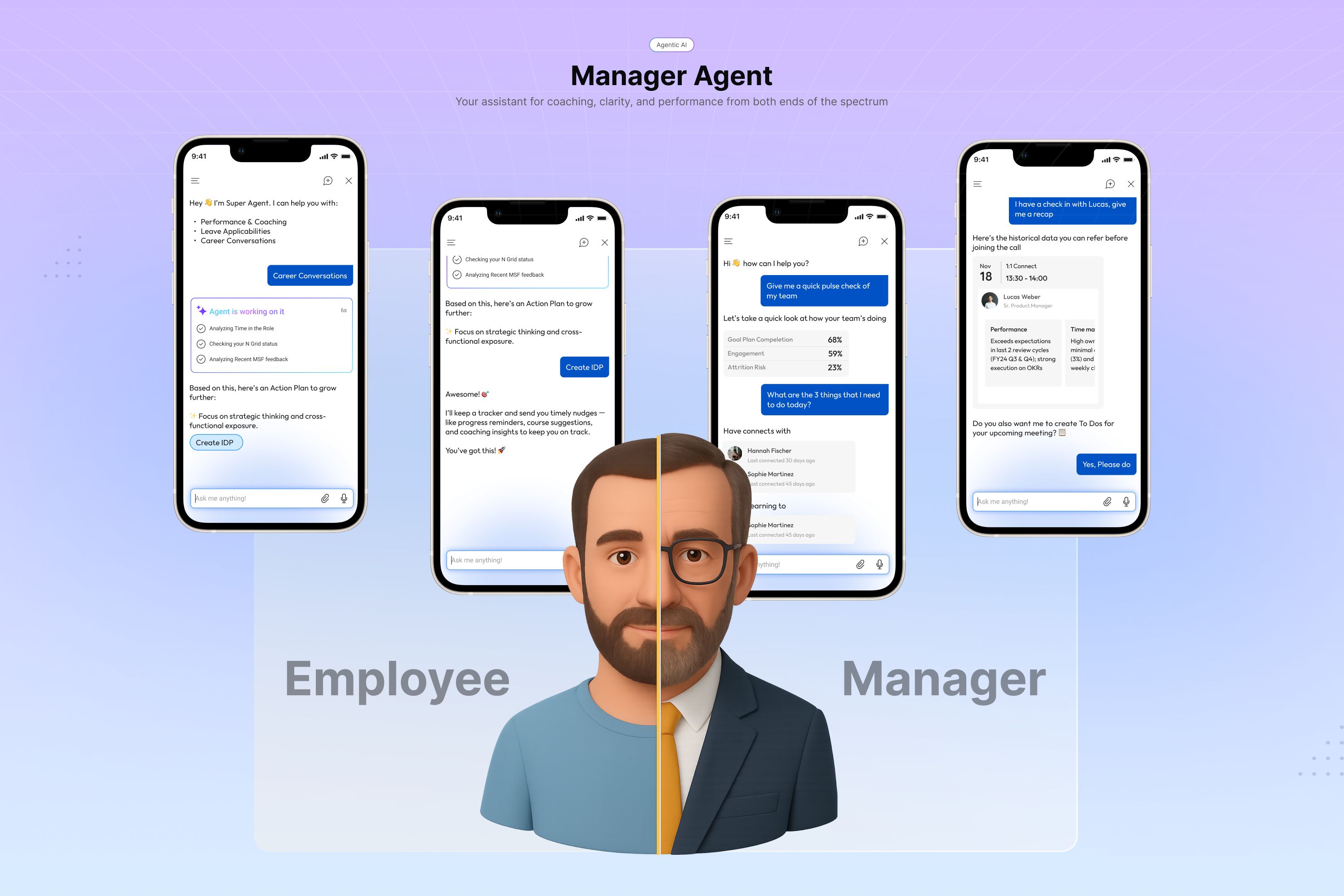 Manager Hub will mature into a catalyst for inclusive, sustainable workplaces, growing alongside every manager. It will adapt to individual styles, experience levels, and leadership journeys through contextual coaching, nudges, and benchmarks that turn daily work into continuous development. As a plug-and-play layer, it will integrate seamlessly with everyday tools. Deeper employee listening, team trends, and teammate comparisons will enable bias-free decision-making. Agentic capabilities will automate non-strategic tasks, freeing managers to focus on judgment and empathy. Collective intelligence across managers and their managers will surface systemic patterns, helping orgs make fairer decisions and build healthier workplaces at scale.