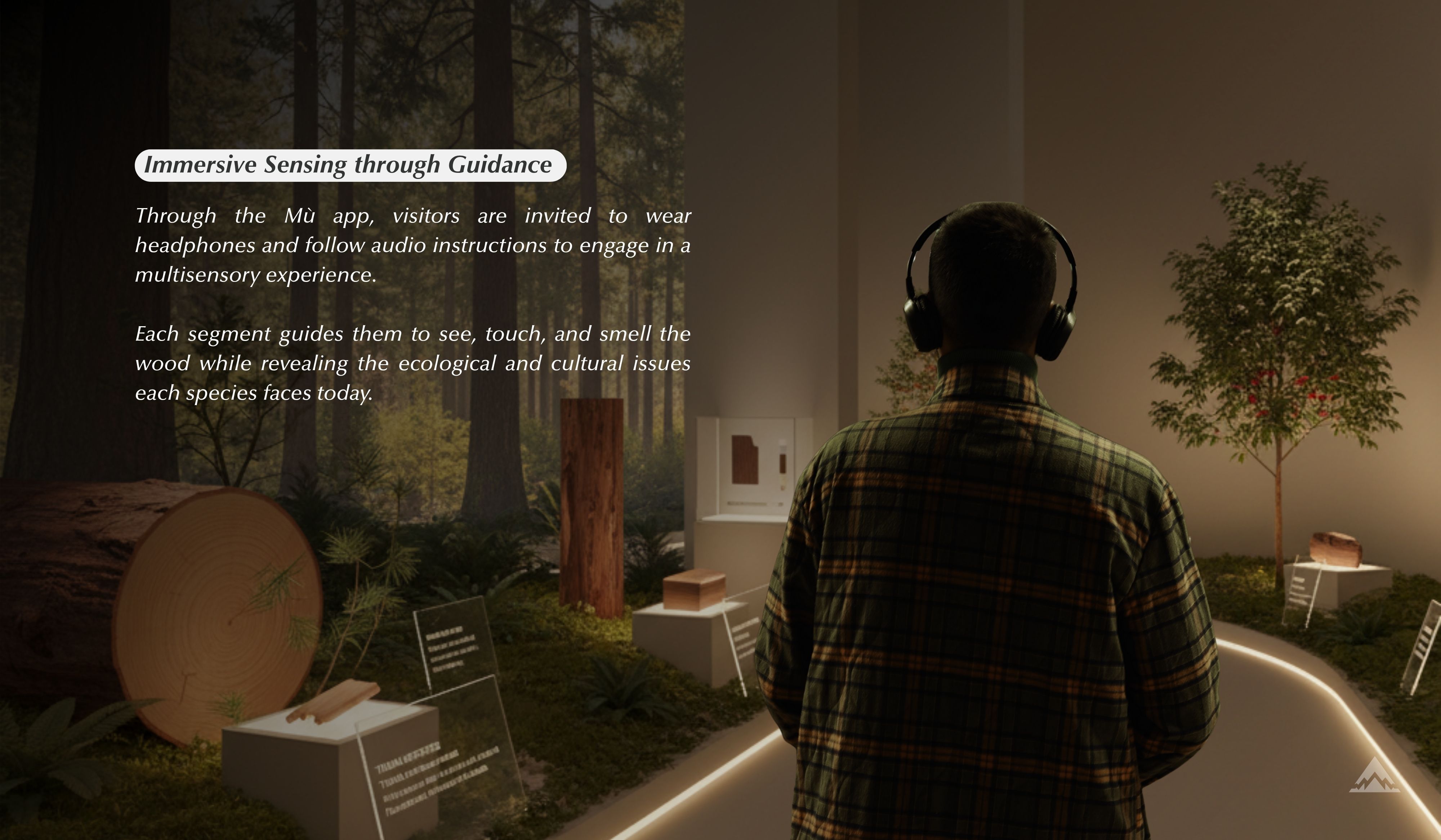 Currently, Mù is a high-fidelity prototype with a validated spatial narrative. In the next five years, we aim to bridge the gap between digital concepts and physical conservation. Our immediate focus is formative usability testing to refine the 'scent-to-digital' handoff and calibrate sensory dosing with technical partners. Long-term, we see Mù deployed as a modular installation in museums, serving as a critical link for screen-bound generations. By turning abstract data into felt experiences, we hope to build a 'Wood Passport' community that actively participates in protecting Taiwan’s remaining sacred trees.