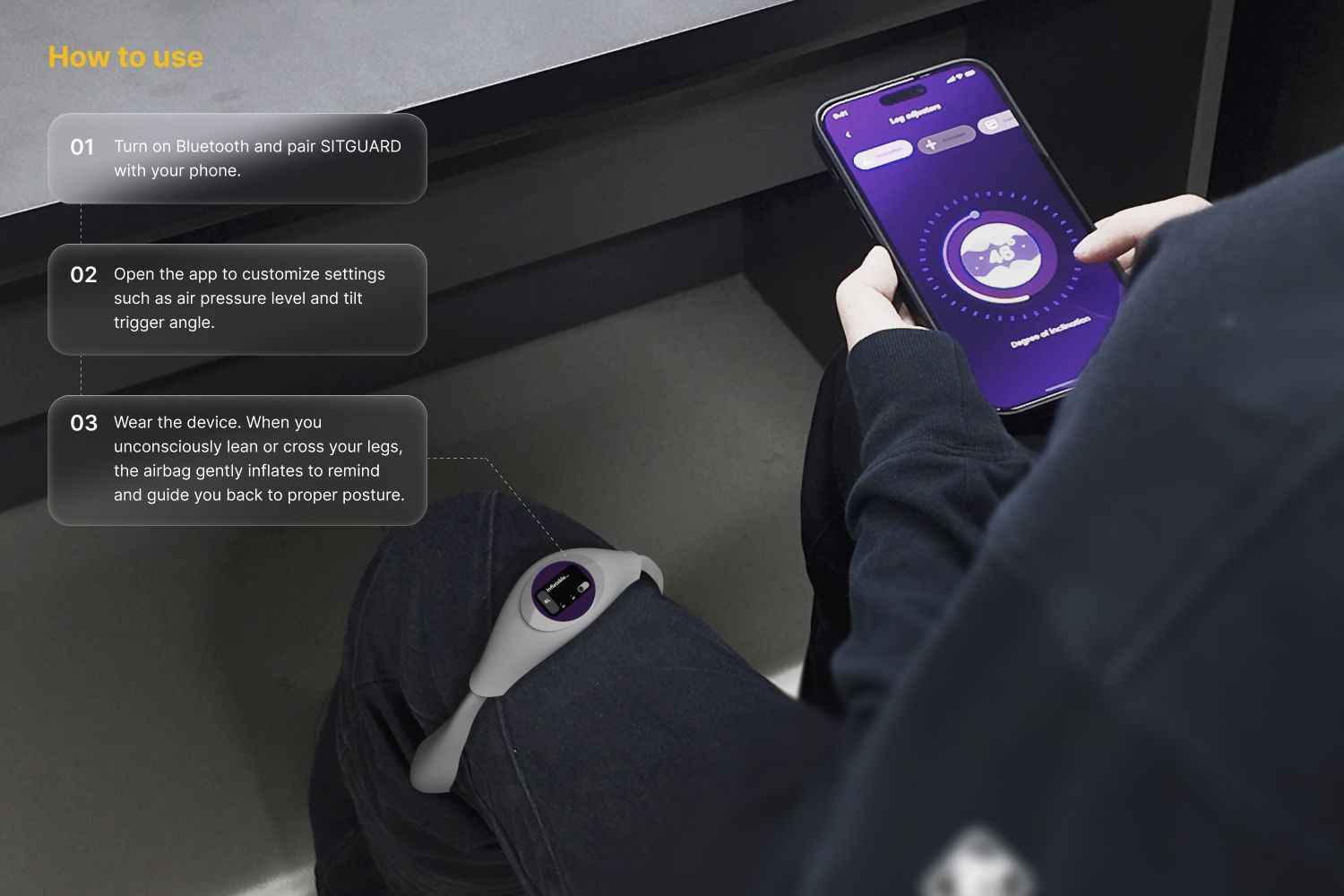 The key UX challenge is detecting unconscious posture deviations that occur during focused, prolonged sitting. These movements are subtle, individual, and easy to miss, making it difficult to set thresholds that remain accurate without causing disruptive alerts. The system must sense shifts precisely while minimizing false triggers.
