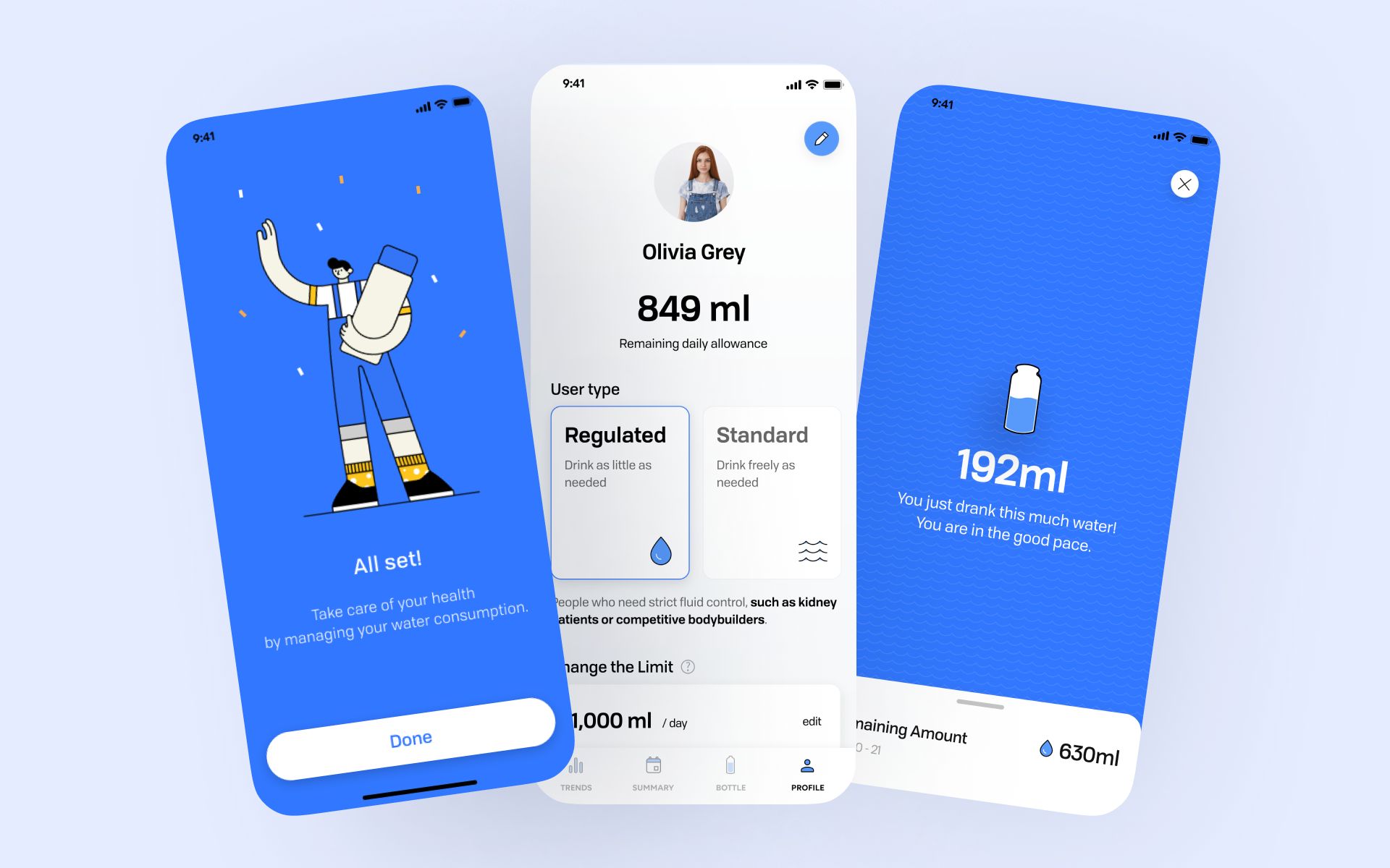 Most hydration apps fail because they just send reminders without showing what you've already consumed or helping you plan ahead. Our key insight was moving from simple alerts to smart planning. The interface shows patients not just what they've drunk, but what they have left and when to drink it throughout the day. We focused on reducing worry while keeping the accuracy these patients need to stay healthy.