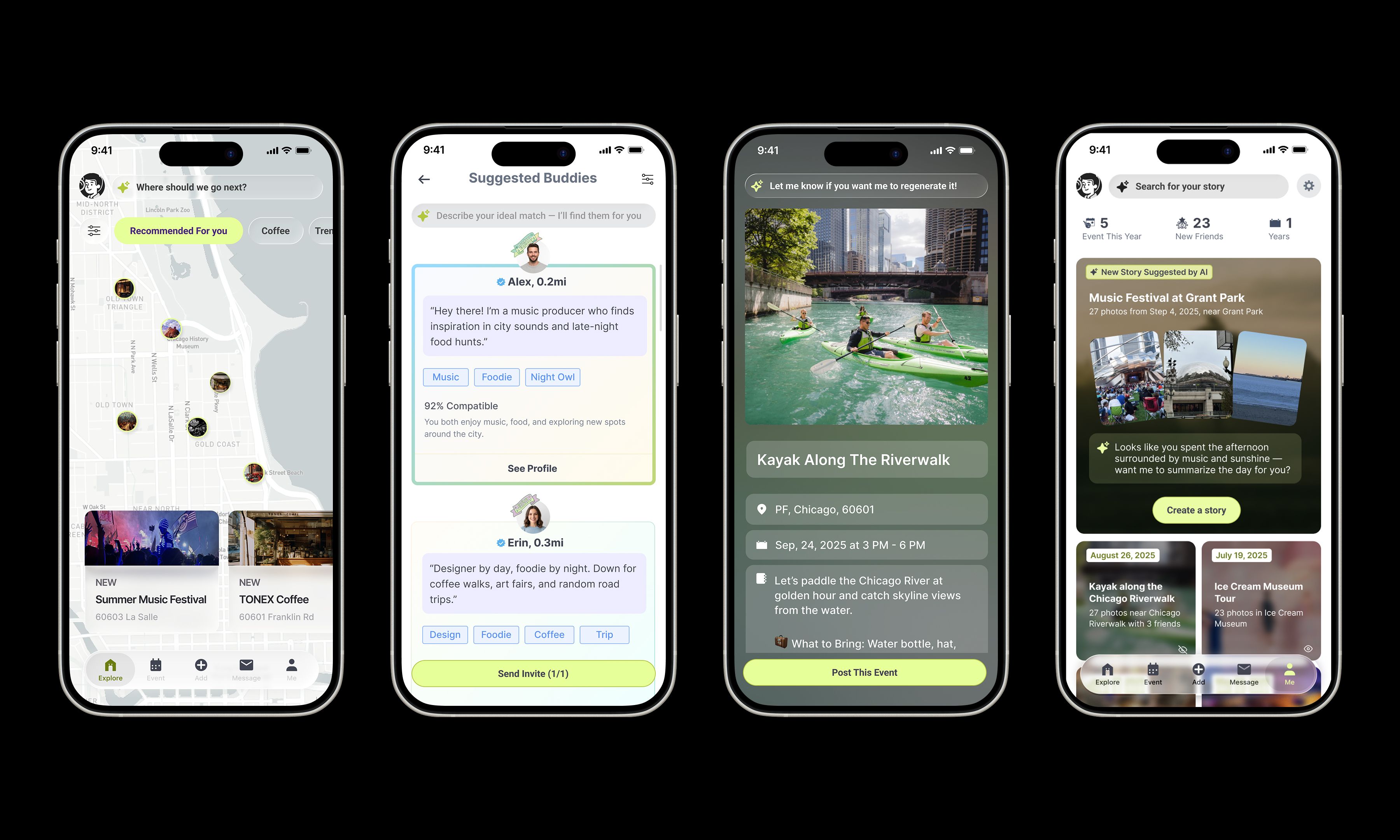 The core UX challenge of Wandrly was designing an AI-powered social platform that supports meaningful human connection without increasing cognitive load or replacing authentic interaction. Social planning involves emotional vulnerability, trust, and coordination across multiple people, contexts, and timeframes. From a UX perspective, the difficulty lay in balancing proactive AI assistance with user agency, reducing choice overload while preserving serendipity, and creating memory-aware experiences that evolve without feeling intrusive or repetitive. This required designing transparent, context-aware interaction flows where AI intent, timing, and influence were always understandable to users.