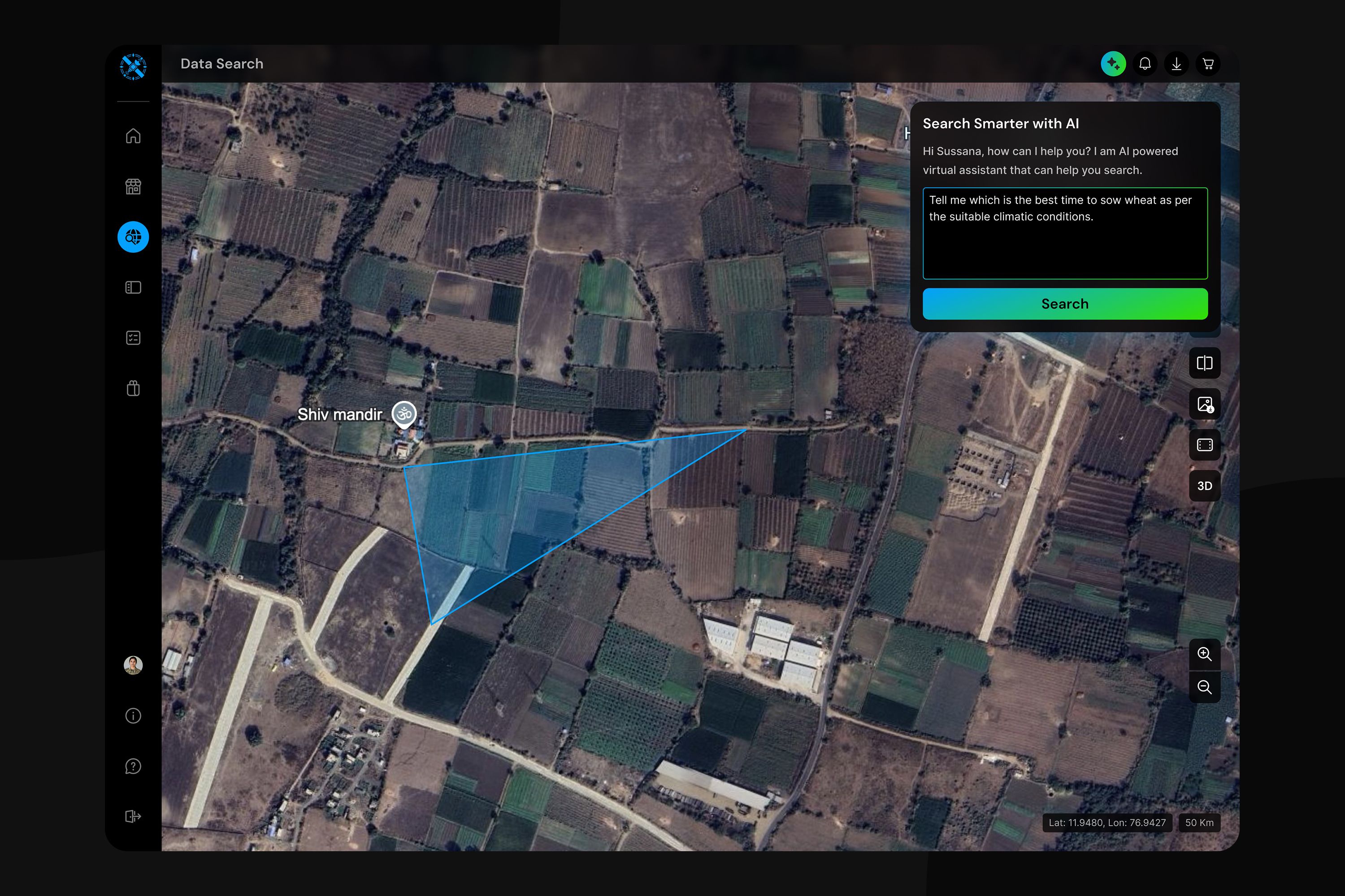 The core UX challenge of InfySpace was designing clarity within an environment defined by extreme complexity. Satellite data, multilayer geospatial inputs, and AI generated insights lacked established interaction patterns, requiring the team to craft an entirely new design language from scratch. The experience had to feel intuitive for first time users while still offering analytical depth for experts. Balancing cognitive load, guiding unfamiliar workflows, and transforming raw spatial intelligence into human readable insight formed the heart of the challenge. It also required building trust through transparent AI behavior and shaping visual structures that turned raw spatial signals into clear, confident decisions.