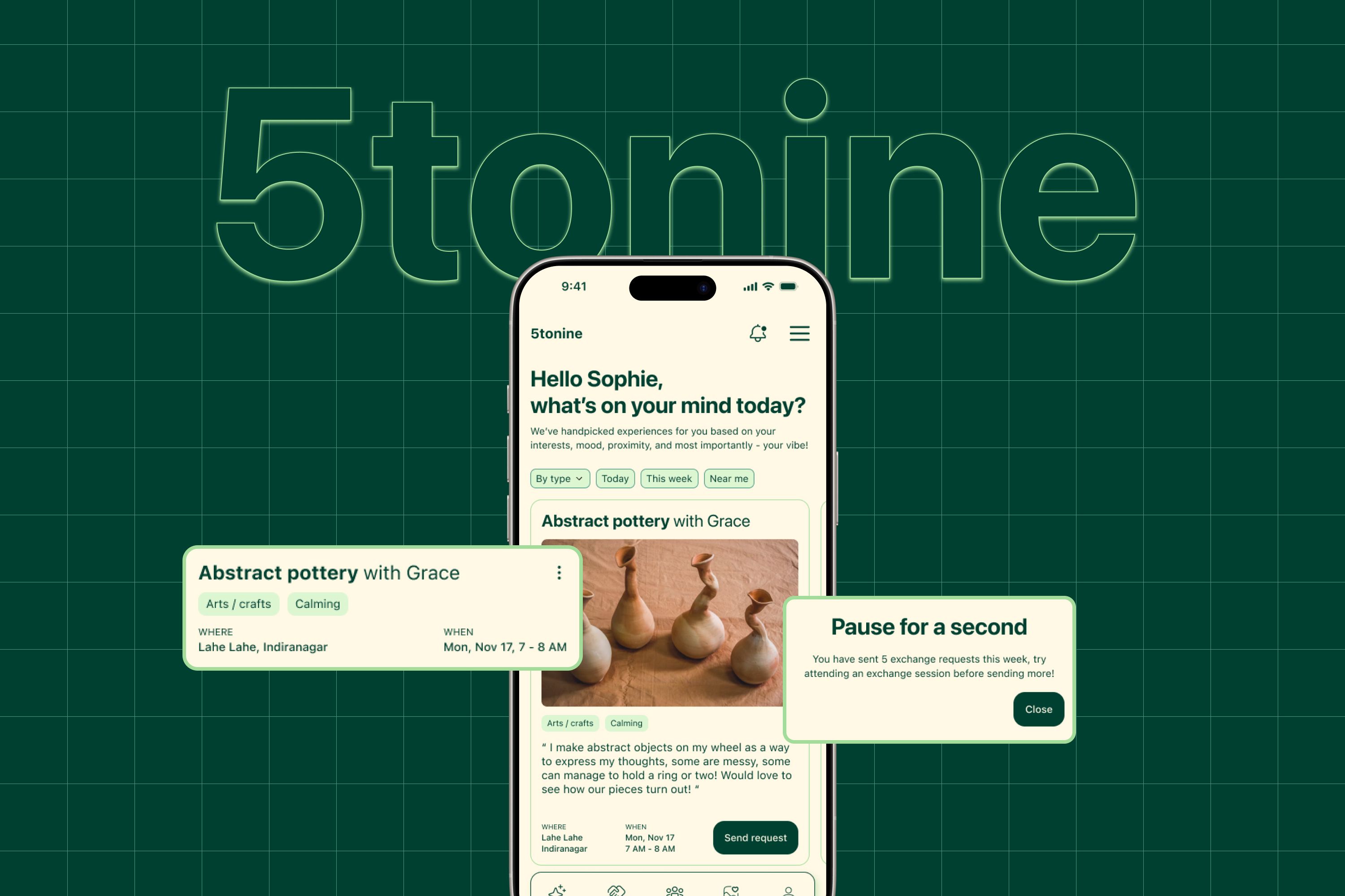 5tonine helps people break out of digital overload by offering curated, screen-light ways to step outside, meet others, and try meaningful a…