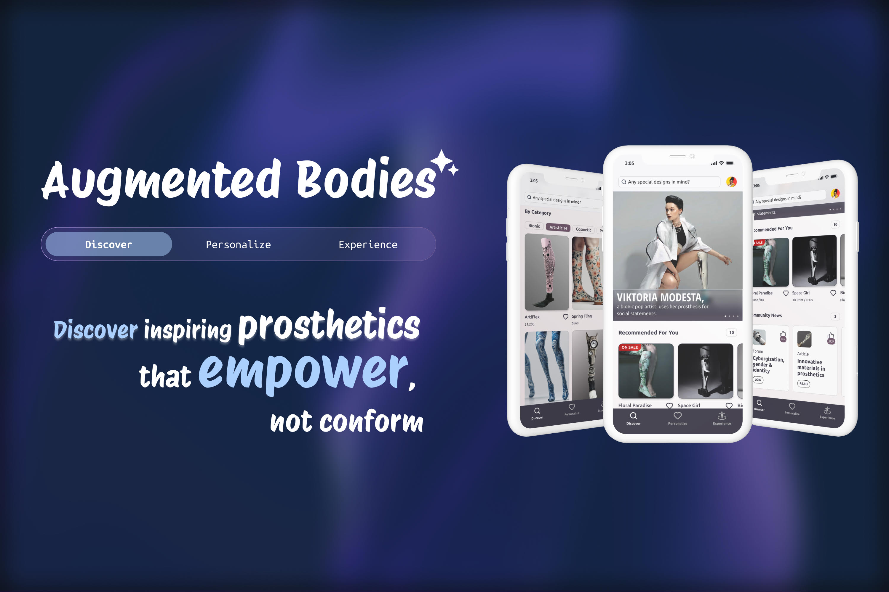 Augmented Bodies envisions an AR mobile app that empowers amputees to reimagine their prosthetics and body identities in non-normative ways.…