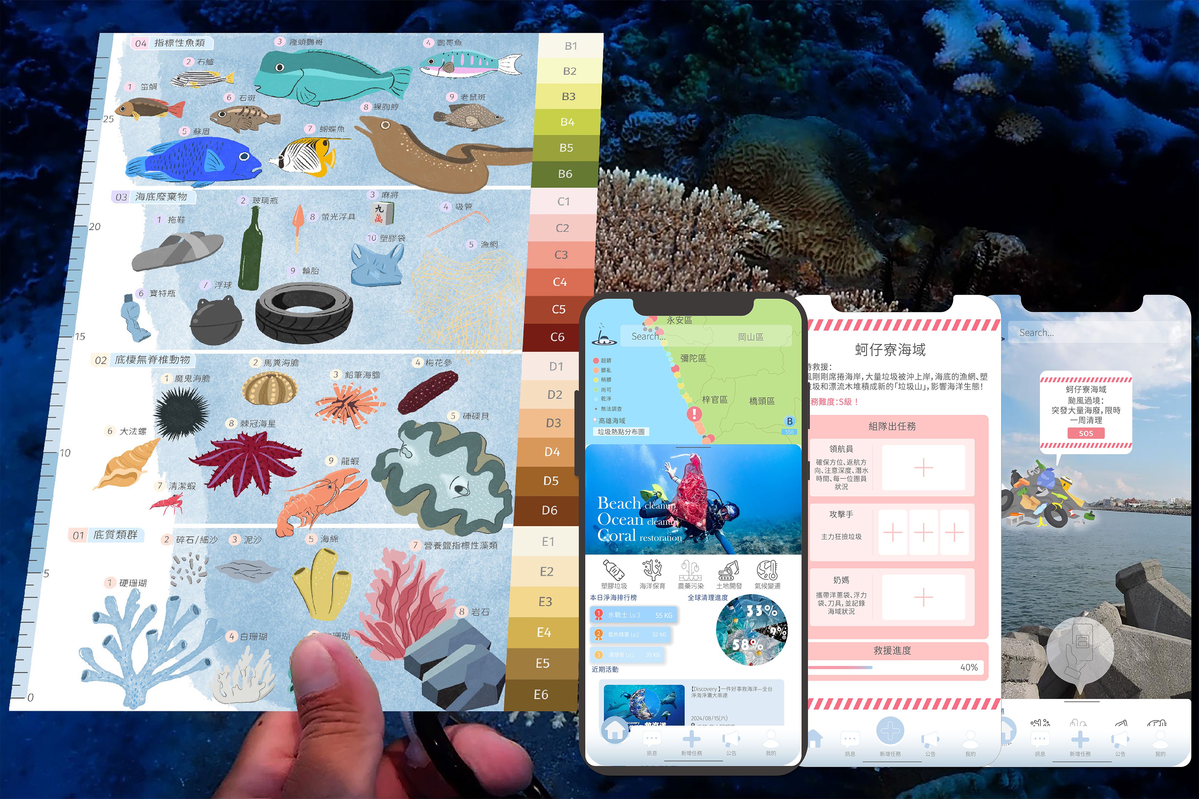 Blue Sense Lab is an ocean conservation system that integrates an AR mission app with an Underwater Check Card. Divers scan the seafloor to …