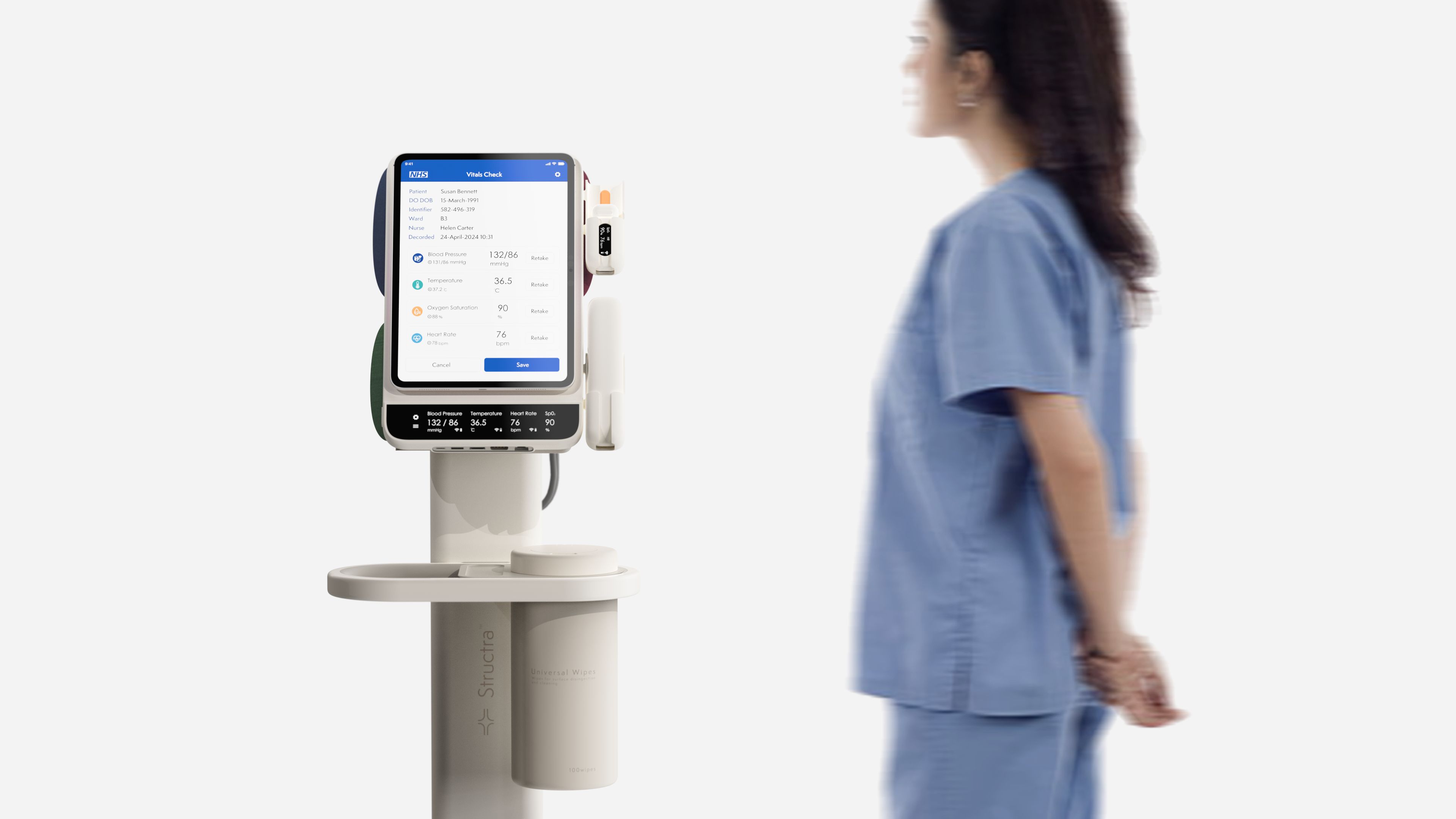 Structra is a compact, modular vital signs and point-of-care (POC) trolley designed for NHS wards. It features a magnetised tablet that wire…